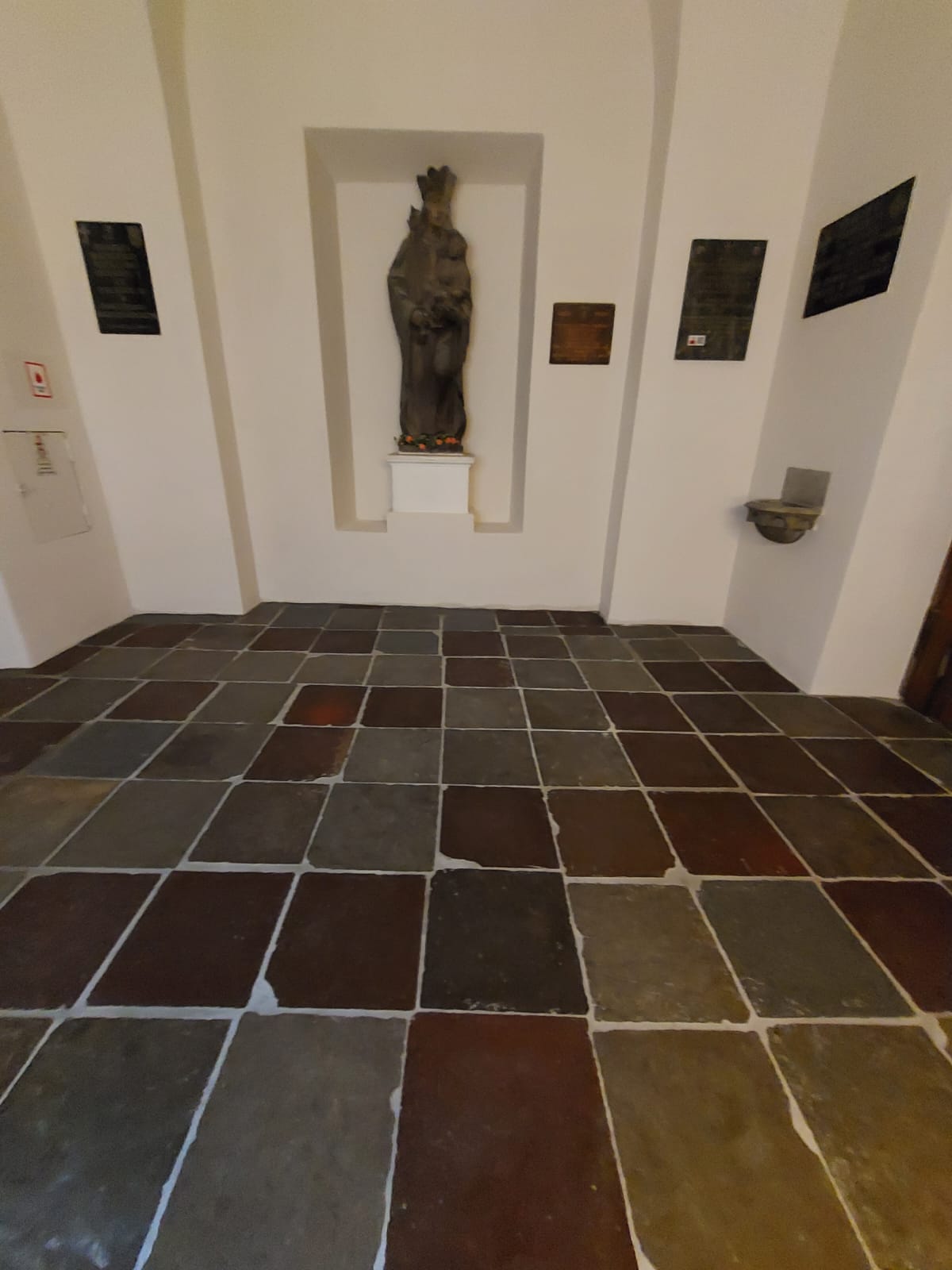 Zakończyły się tegoroczne prace konserwacyjne w kruchcie naszego kościoła. Dzięki dotacji uzyskanej od Wojewódzkiego Konserwatora Zabytków udało się nam odnowić ściany, sklepienia i posadzkę. Wnioskujemy o dotację na przyszły rok w celu dokończenia remontu.
