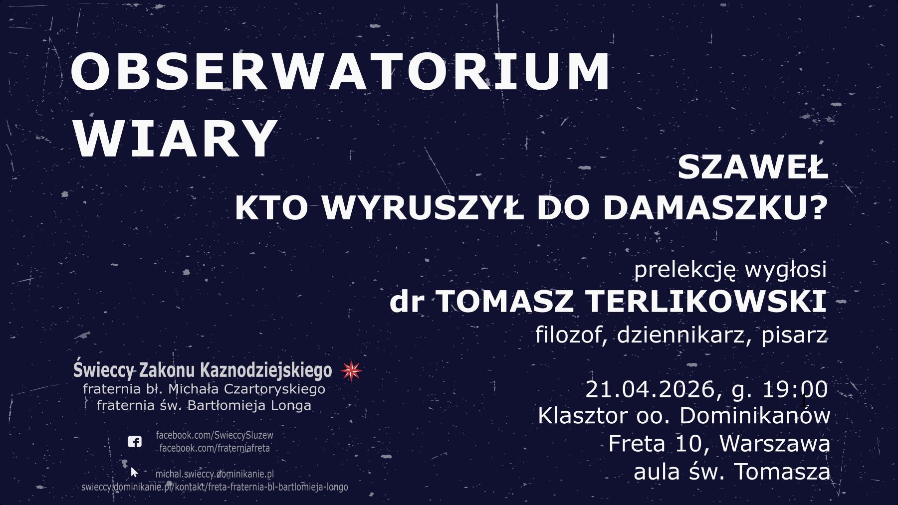 Obserwatorium Wiary to spotkania organizowane przez Świeckich Dominikanów – prelekcje na temat wiary i Kościoła.